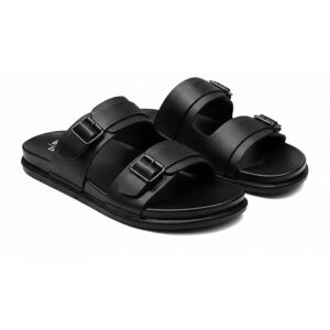 BRUTON 1135 Men’s Double Strap Buckle Sliders | Comfortable Soft Cushion Slip-On Slippers | Lightweight Anti-Skid Casual for Daily Wear, Office & Outdoor Use